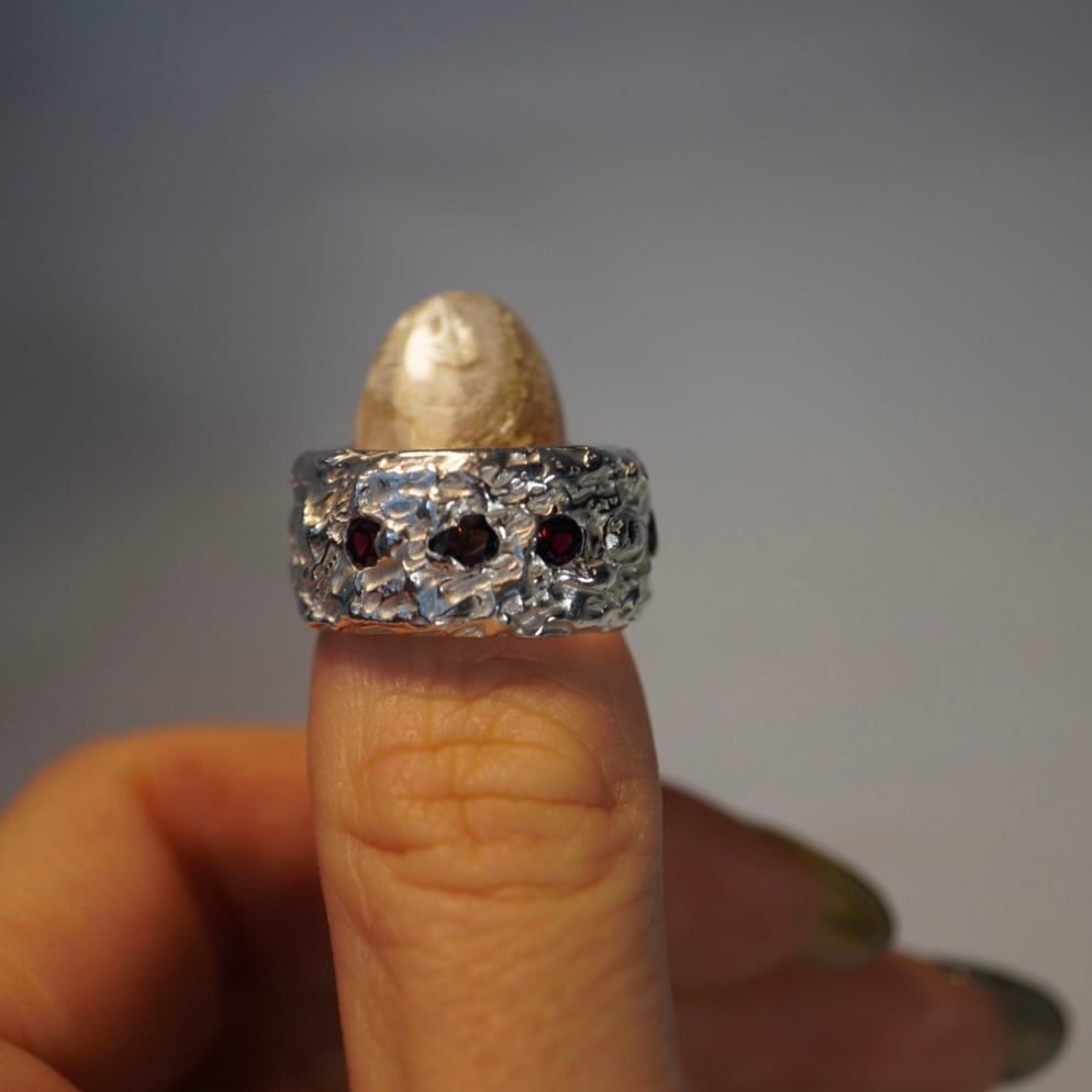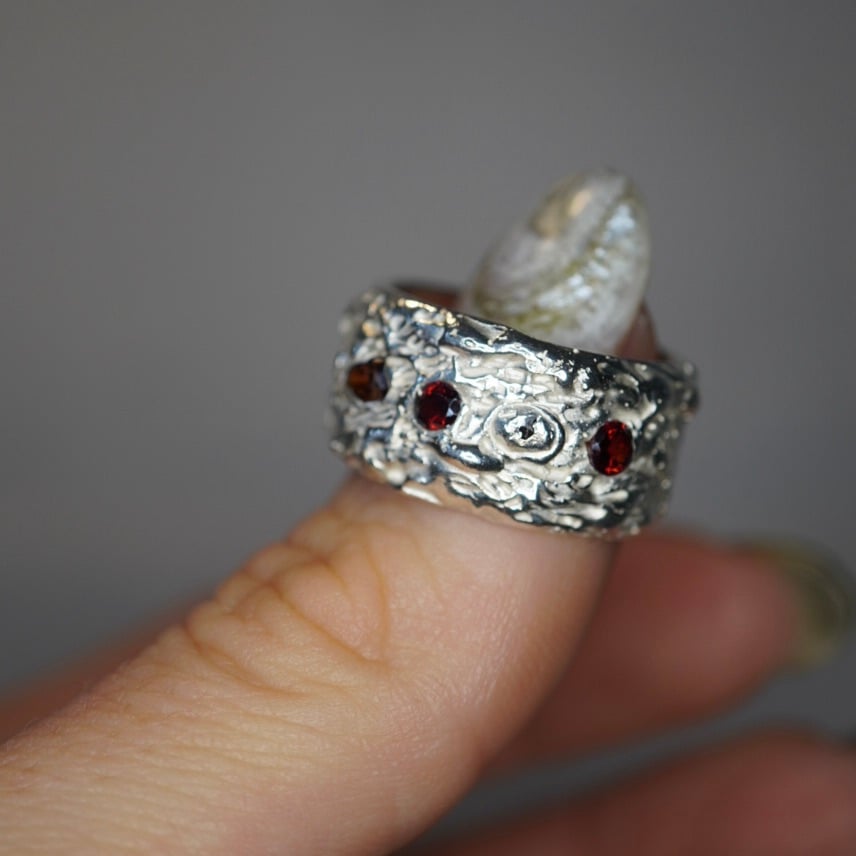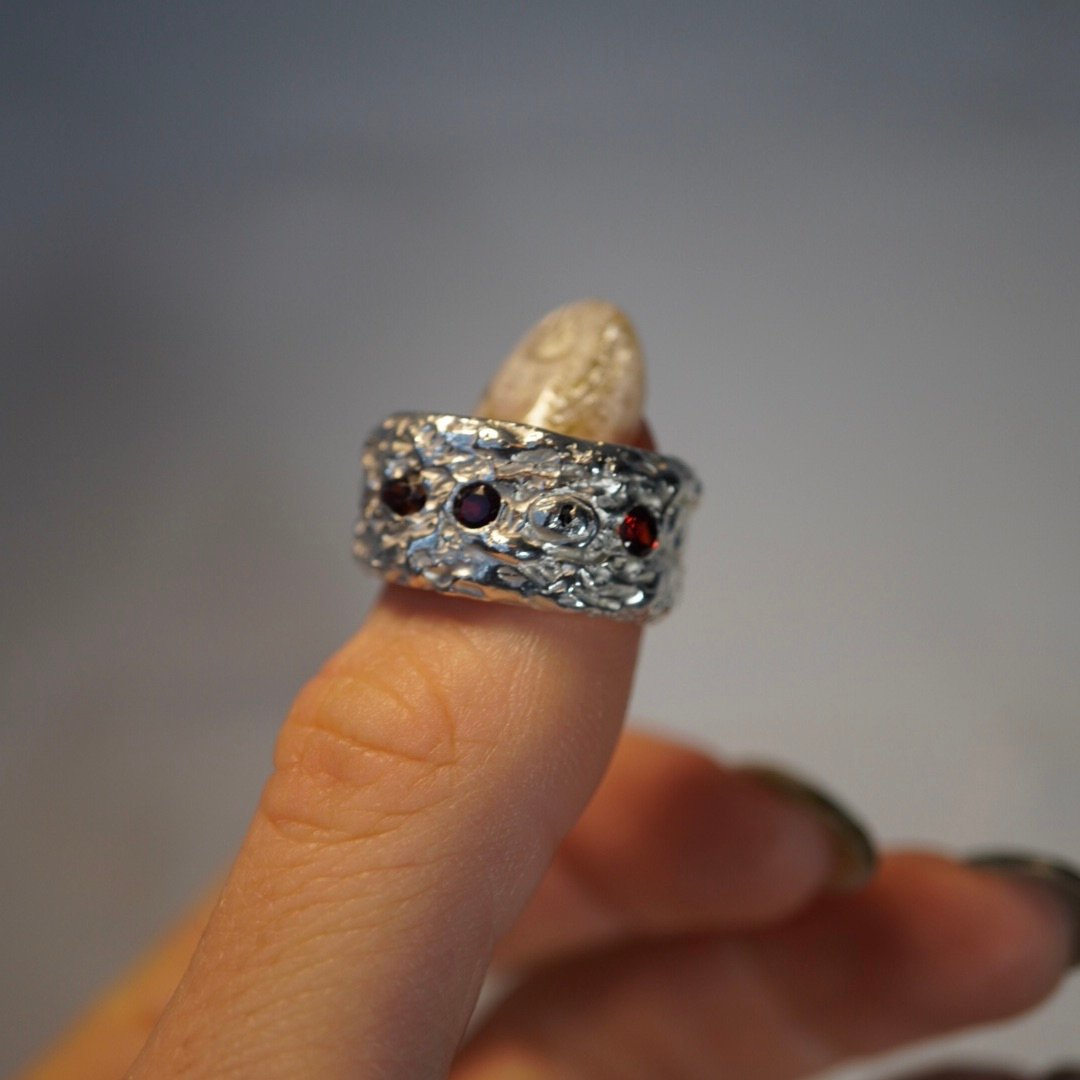 All rings are one of a kind and only come in one size. For bespoke sizing and commissions message me :)